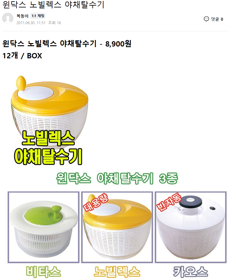 어쩌다 '야채탈수기' 얘기가 나왔다